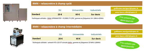 Contacts et tarifs RMN Relaxométrie Contacts Anne-Laure ROLLET Contacter par courriel Guillaume MERIGUET Contacter par courriel Tarifs